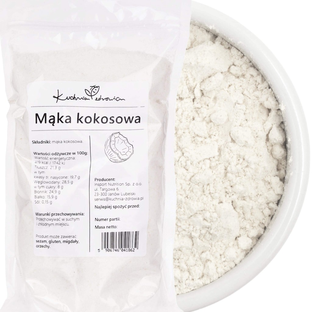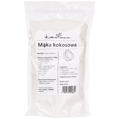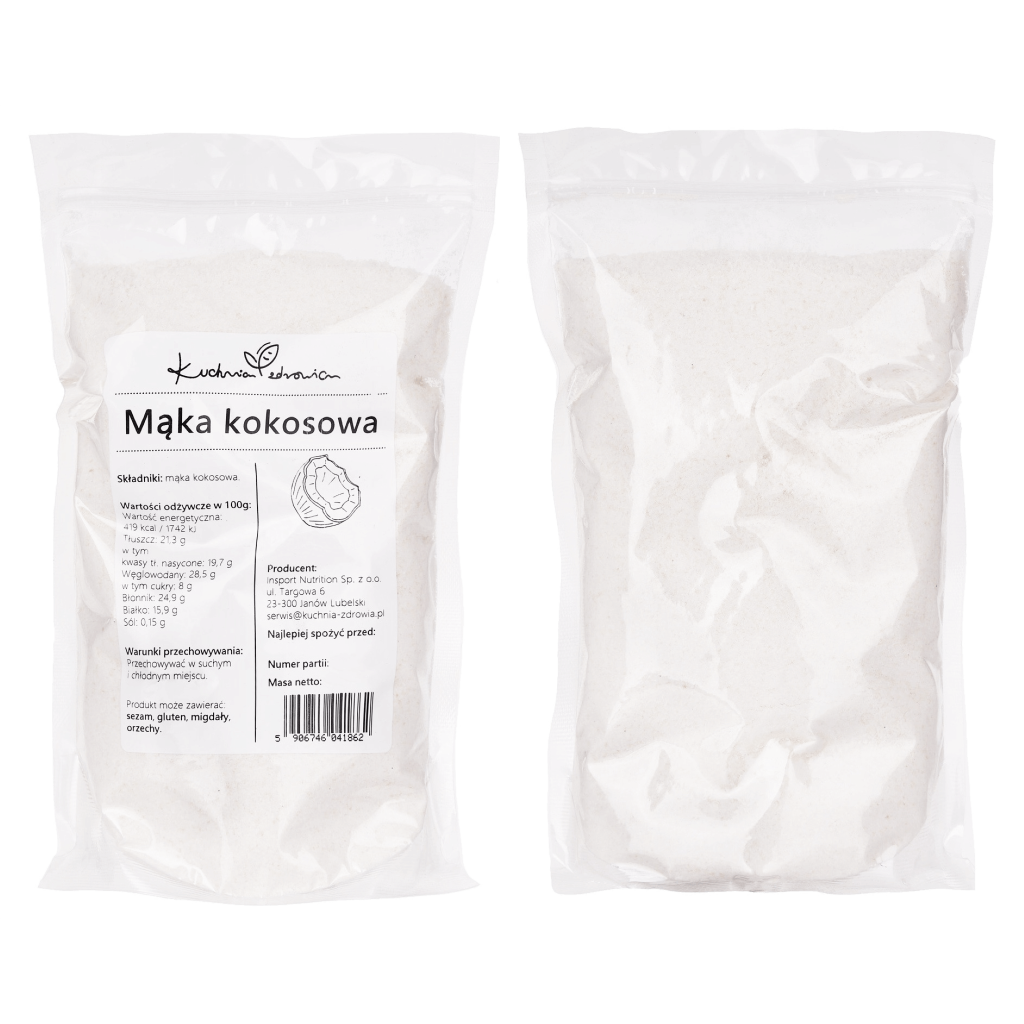 Warunki przechowywania: Przechowuj mąkę kokosową w szczelnie zamkniętym opakowaniu, w chłodnym i suchym miejscu, z dala od bezpośredniego światła słonecznego.