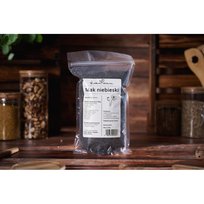 Ziarno maku niebieskiego charakteryzuje się wyjątkowym smakiem i aromatem, wzbogacającym wiele potraw. Można je wykorzystać do wypieków, takich jak ciasta, chleby, bułki czy strucle. Dodatek ziaren maku do potraw sprawia, że stają się one bardziej sycące, a jednocześnie zdrowsze dzięki zawartości błonnika, białka, witamin (głównie z grupy B) oraz minerałów (wapń, fosfor, magnez).