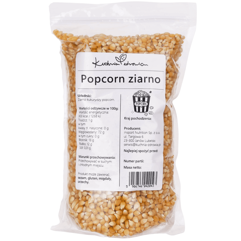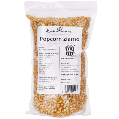 Sposób przyrządzania: W głębokim rondlu lub garnku rozgrzać niewielką ilość oleju, następnie na rozgrzany olej wsypać ziarno kukurydzy i przykryć pokrywką. Podgrzewać na średnim ogniu nie podnosząc pokrywki. Po zakończeniu pękania ziaren usunąć naczynie z ognia i odczekać chwilę a następnie dodać do popcornu ulubione dodatki – masło, sól, cukier lub przyprawy. Gotowe!