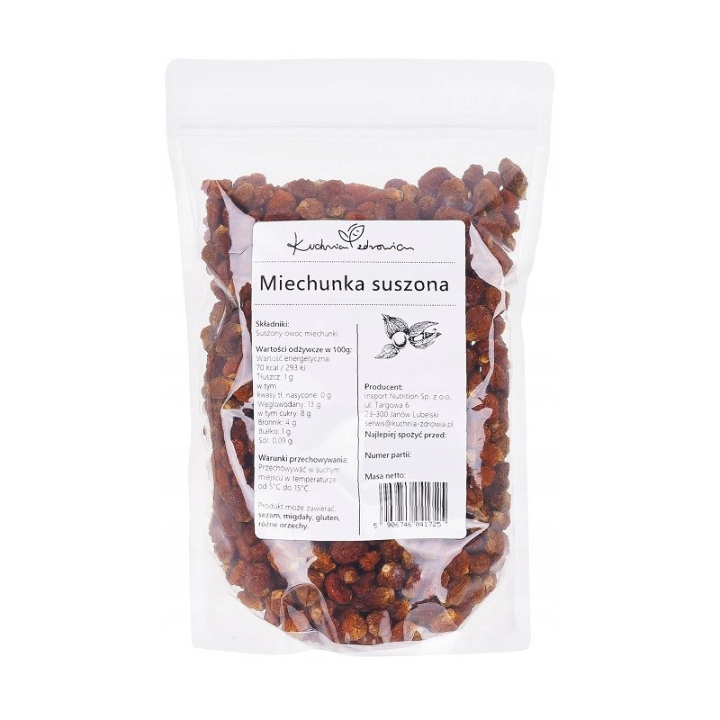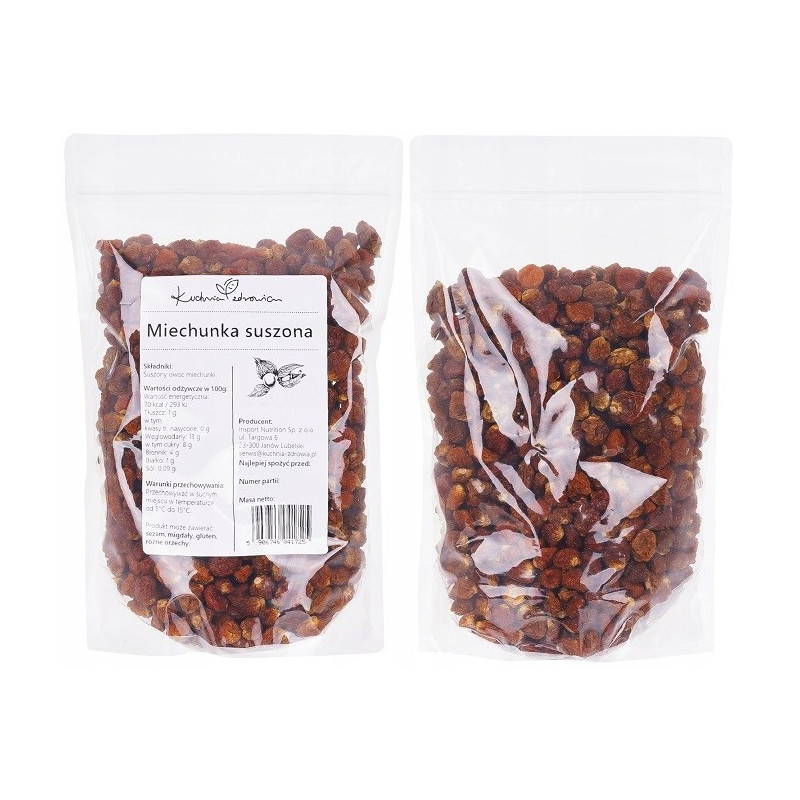 ✅Suszona miechunka to egzotyczny owoc o wyjątkowym, lekko kwaskowatym smaku i delikatnej słodyczy. Świetnie sprawdza się jako zdrowa przekąska lub składnik wielu potraw. Dzięki naturalnemu procesowi suszenia zachowuje większość cennych składników odżywczych oraz intensywny aromat.