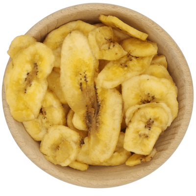 Chipsy bananowe to produkt odpowiedni dla osób na diecie wegetariańskiejwegańskiej lub bezglutenowej. Można je podawać jako samodzielną przekąskę, ale również wykorzystać jako dodatek do deserów, muesli czy ciast.