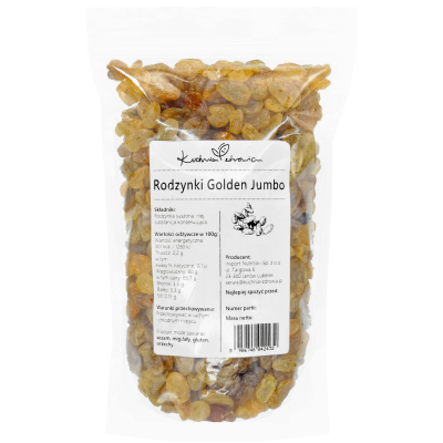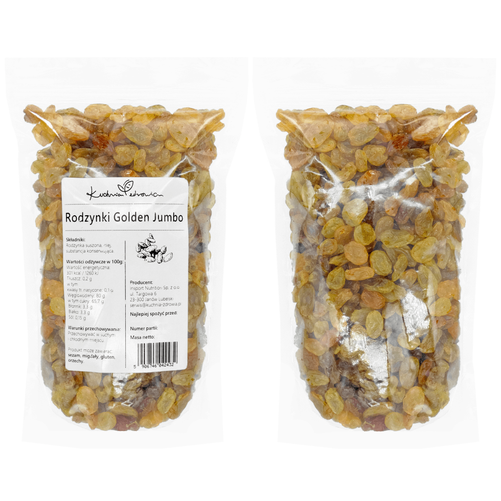 Rodzynki Golden Jumbo są powszechnie cenione ze względu na swoją wszechstronność w kuchni. Są idealnym dodatkiem do wielu dań, zarówno słodkich, jak i słonych. Można je dodawać do ciast, ciasteczek, chlebów, granoli i innych wypieków, a także do sałatek, dań z ryżu, czy dań mięsnych. Są też doskonałe jako samodzielna przekąska lub jako dodatek do śniadaniowych płatków czy jogurtu.