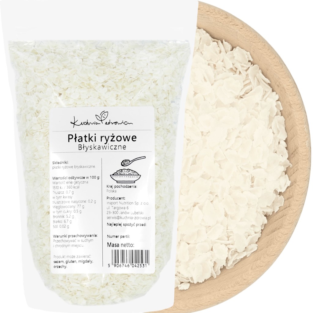 Błyskawiczne płatki ryżowe są niezwykle wszechstronne. Można je spożywać na surowo lub gotowane, jako dodatek do śniadaniowych musli, deserów, zup lub pieczonych dań. Wystarczy dodać do nich ciepłe mleko lub wodę, a po kilku minutach otrzymujesz zdrowy, sycący posiłek. Ze względu na swoją naturalną delikatną słodycz, dobrze komponują się zarówno z owocami, jak i różnego rodzaju dodatkami, takimi jak orzechy, cynamon, miód czy jogurt. Są one również doskonałym składnikiem do domowych batonów energetycznych, puddingów, placków, ciasteczek i wielu innych zdrowych przekąsek.