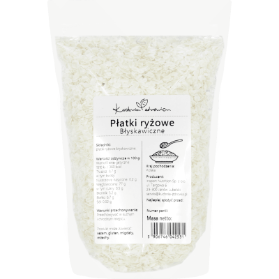 Płatki ryżowe błyskawiczne to produkt naturalny, wytwarzany z pełnego ziarna ryżu, które zostało uprzednio ugotowane, a następnie spłaszczone. Charakteryzują się delikatnym smakiem i miękką konsystencją po ugotowaniu. Płatki ryżowe błyskawiczne są idealnym rozwiązaniem dla osób ceniących zdrowe i szybkie śniadania.
