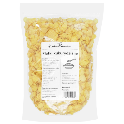 Płatki kukurydziane Kuchnia Zdrowia charakteryzują się delikatnym, naturalnym smakiem, który doskonale komponuje się z mlekiem, jogurtem, owocami czy orzechami. Możesz dodawać je do musli, deserów, a nawet używać jako składnik wypieków lub panierki.
