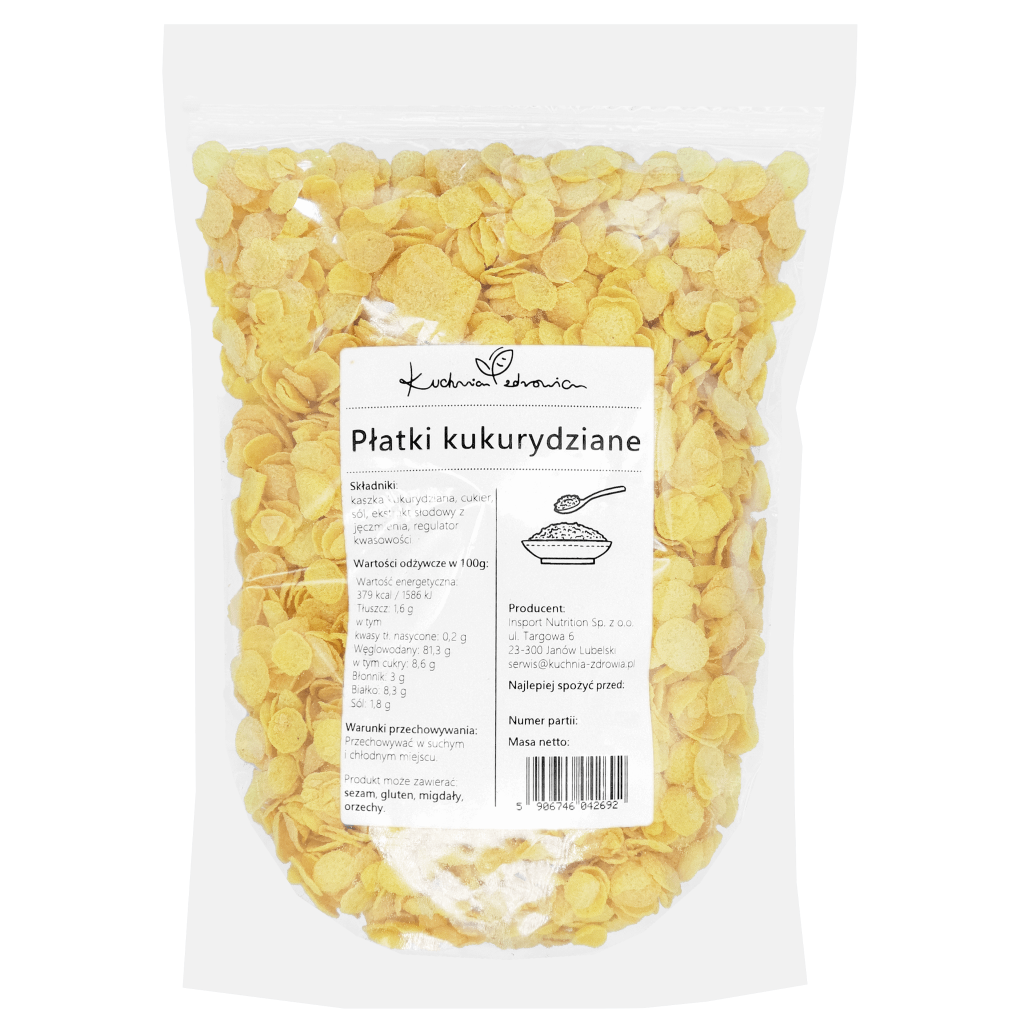 Składniki: kaszka kukurydziana, cukier, sól, ekstrakt słodowy z jęczmienia, regulator kwasowości.