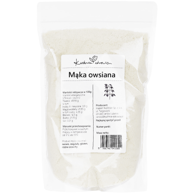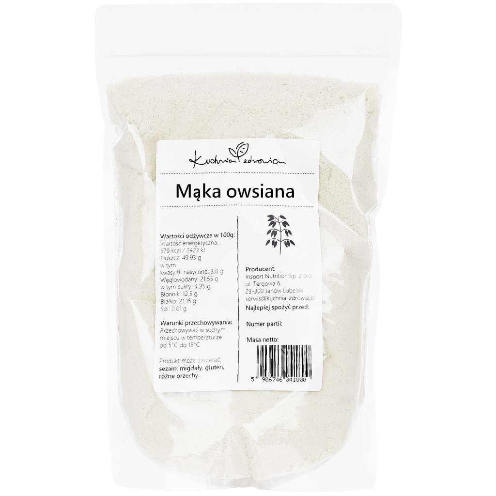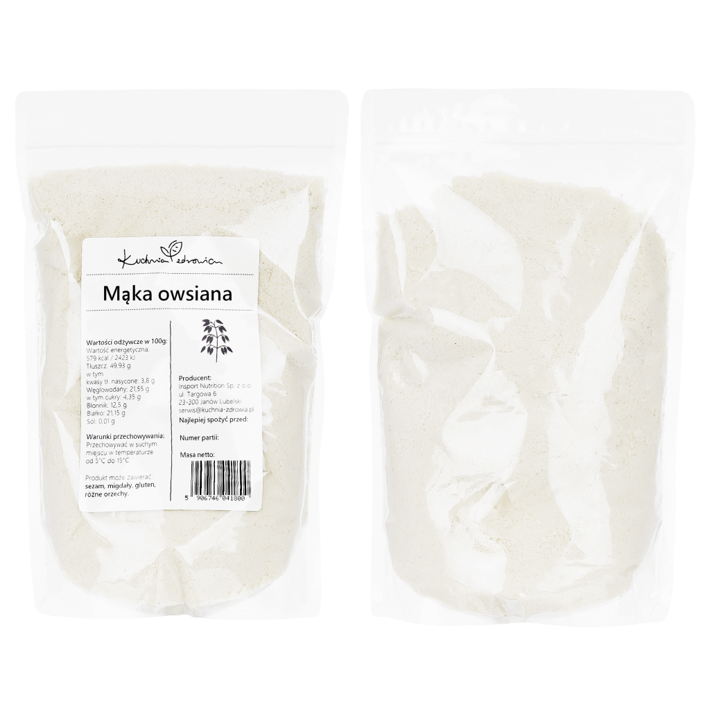✔️ Mąka owsiana jest bogata w błonnik, zawiera witaminy z grupy B i minerały. Dzięki temu może pozytywnie wpływać na układ trawienny oraz wspierać ogólną kondycję organizmu.