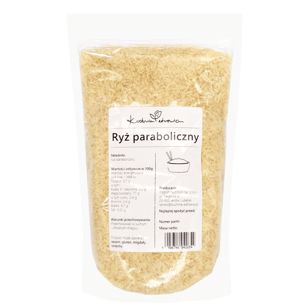 Ryż paraboliczny to odmiana ryżu długoziarnistego, który przechodzi specjalną obróbkę termiczną. Proces ten polega na wystawieniu na działanie pary wodnej pod wysokim ciśnieniem surowych ziaren ryżu, co pozwala na zatrzymanie składników odżywczych, które zwykle są tracone podczas tradycyjnej obróbki. Ryż paraboliczny jest bardziej sypki po ugotowaniu niż ryż biały, a jego charakterystyczne, jasnobrązowe zabarwienie wynika z zachowania warstwy otrębów.