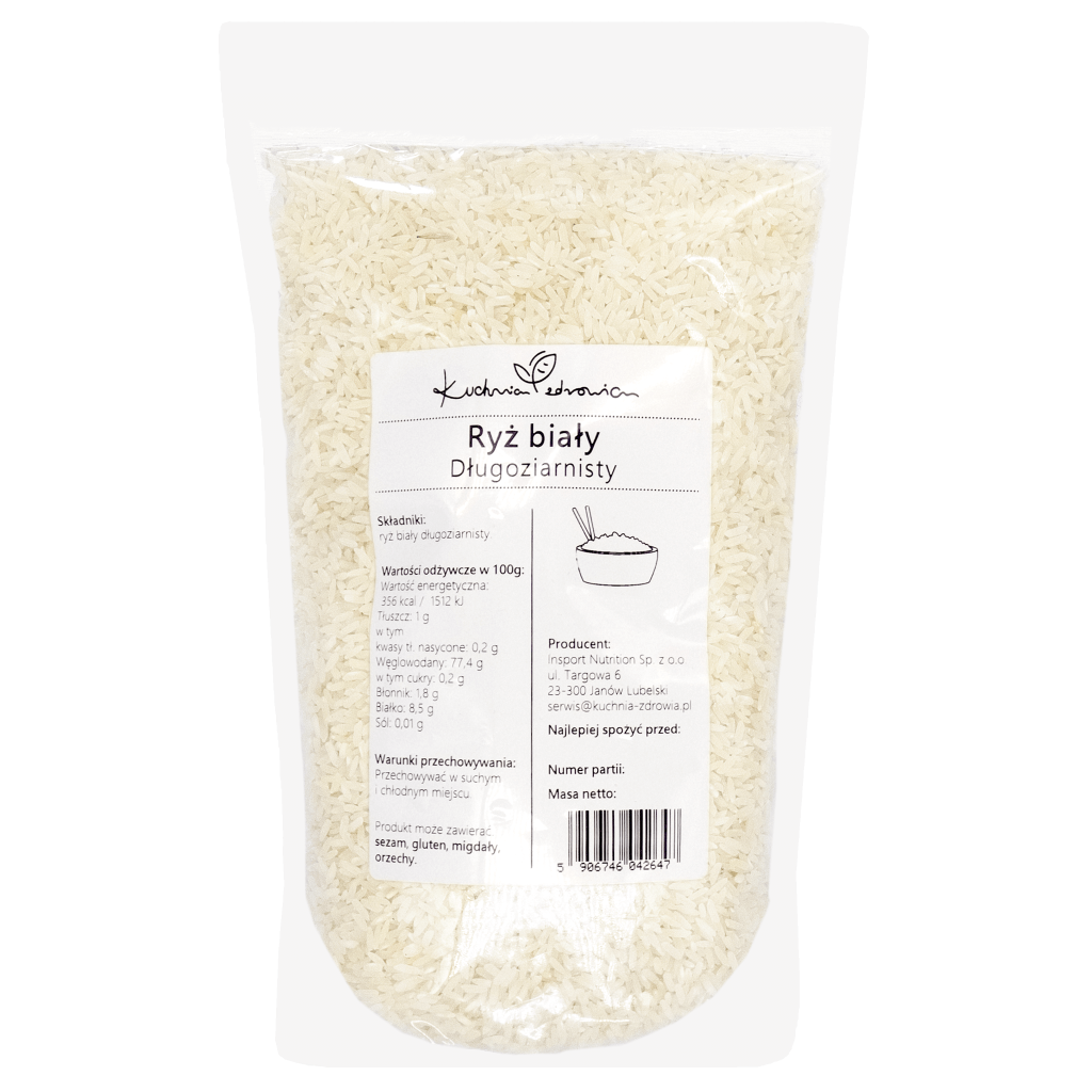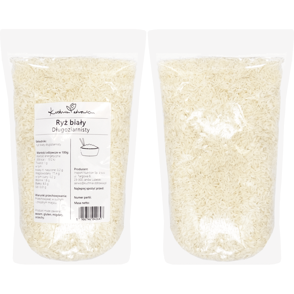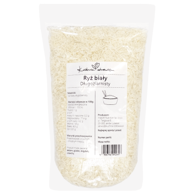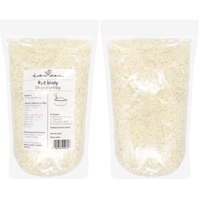 Ryż biały długoziarnisty to popularna odmiana ryżu, charakteryzująca się wyjątkowo długimi i cienkimi ziarnami. Po ugotowaniu ziarna stają się lekko kleiste, ale nadal są oddzielne, co nadaje potrawom elegancki wygląd i delikatny smak. Ryż ten po zbiorach jest poddany łuskaniu a następnie polerowaniu, dzięki czemu usunięta jest łupinka i warstwa otrębów, co nadaje mu białą barwę i delikatną teksturę.