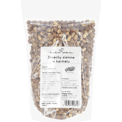 Orzechy ziemne w karmelu to popularna przekąska, która łączy w sobie wyjątkowy smak orzechów ziemnych z intensywną nutą smaku wynikającą z procesu prażenia, natomiast dodatek karmelu jeszcze bardziej podkreśla smak orzechów.