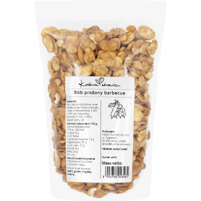 Bób prażony chili BBQ to doskonała przekąska dla tych, którzy cenią sobie słodko-pikantne smaki z delikatną wędzoną nutą. Bób, znany ze swoich wyjątkowych właściwości zdrowotnych, jest bogaty w białko i błonnik, co czyni go doskonałym wyborem dla osób szukających roślinnych źródeł białka.