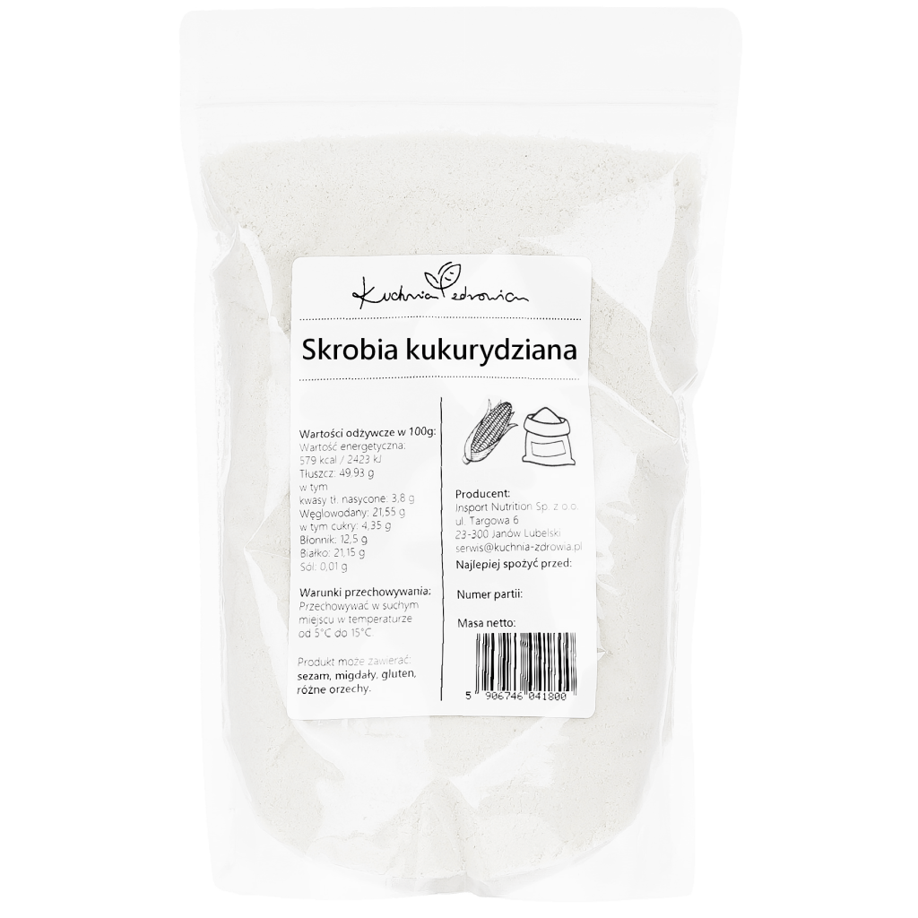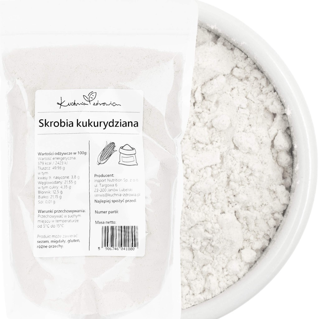Skrobia kukurydziana najczęściej jest wykorzystywana do zagęszczania potraw takich jak: zupy, sosy, desery (kisiel, budyń) lub jako składnik wypieków aby nadać im właściwej konsystencji. Skrobię kukurydzianą należy dodać do zimnej wody, wymieszać, a następnie dodać do sosu lub zupy. Dzięki zastosowaniu skrobi kukurydzianej w mgnieniu oka nadasz potrawom jedwabistej, gładkiej konsystencji, czyniąc z nich smaczne i doskonałe dania.