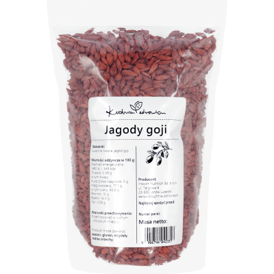 Jagody goji inaczej owoce kolcowoju, to małe, jasnoczerwone owoce, które są popularne ze względu na dużą zawartość cennych dla organizmu witamin takich jak: witamina C, witamina A, witaminy z grupy B (B1, B2, B6), witamina E, a także minerałów: żelazo, cynk, miedź, selen i mangan.