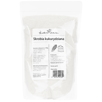 Skrobia kukurydziana najczęściej jest wykorzystywana do zagęszczania potraw takich jak: zupy, sosy, desery (kisiel, budyń) lub jako składnik wypieków aby nadać im właściwej konsystencji. Skrobię kukurydzianą należy dodać do zimnej wody, wymieszać, a następnie dodać do sosu lub zupy. Dzięki zastosowaniu skrobi kukurydzianej w mgnieniu oka nadasz potrawom jedwabistej, gładkiej konsystencji, czyniąc z nich smaczne i doskonałe dania.