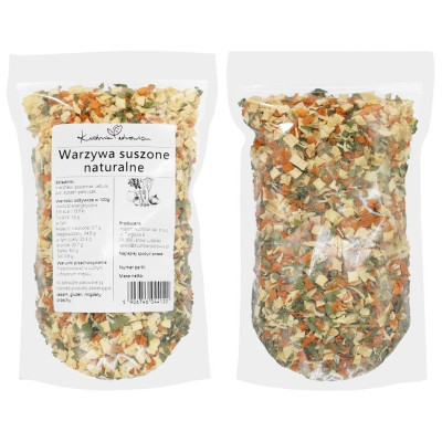 Mieszanka warzyw suszonych, znana również jako suszona włoszczyzna, to tradycyjna kompozycja warzyw korzeniowych i cebulowych, która stanowi podstawę wielu klasycznych dań kuchni polskiej i europejskiej. Ta starannie wyselekcjonowana mieszanka zawiera: marchew, pasternak, cebulę, por oraz korzeń pietruszki, zapewniając głębię smaku i aromatu w prosty oraz wygodny sposób.