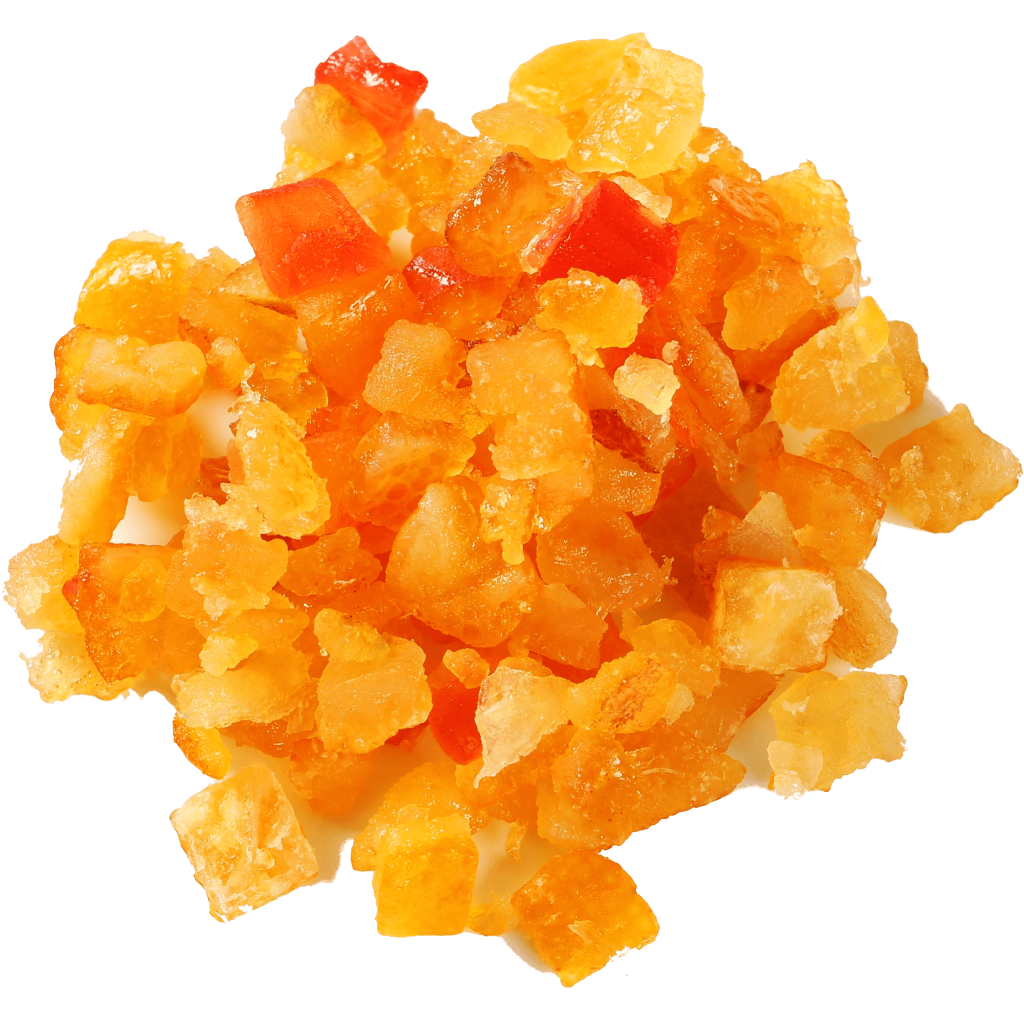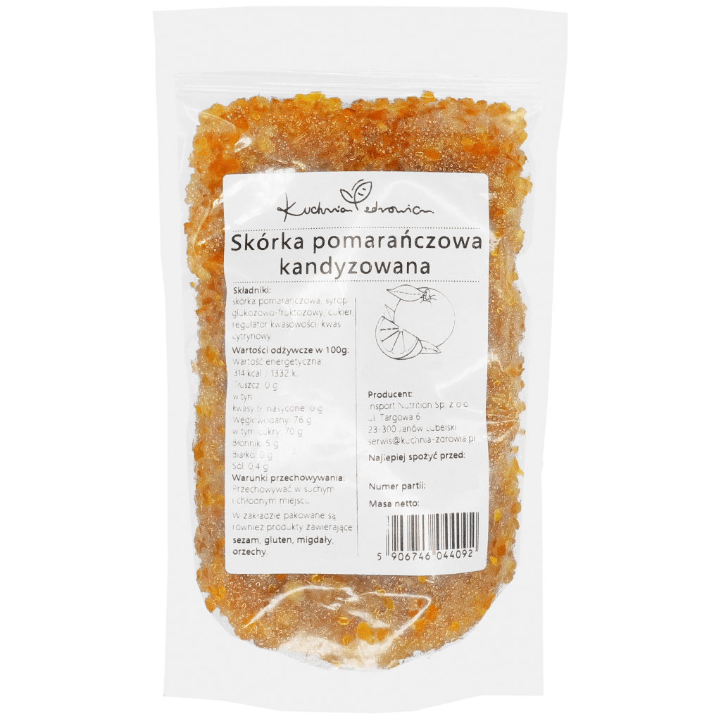 Skórka pomarańczowa kandyzowana to wyjątkowy i aromatyczny produkt, będący połączeniem intensywnego smaku i zapachu pomarańczy z delikatną słodyczą procesu kandyzowania. Produkcja skórki pomarańczowej kandyzowanej rozpoczyna się od starannego wyboru dojrzałych, soczystych pomarańczy. Skórka jest następnie oddzielana od miąższu, starając się zachować jak najwięcej białej, gąbczastej warstwy (albedo), która jest bogata w pektyny i naturalne aromaty. Po usunięciu nadmiaru goryczki przez blanszowanie w wodzie, skórka jest gotowana w syropie cukrowym. Proces ten pozwala na stopniowe wnikanie cukru do skórki, nadając jej słodki smak i przyjemną konsystencję.