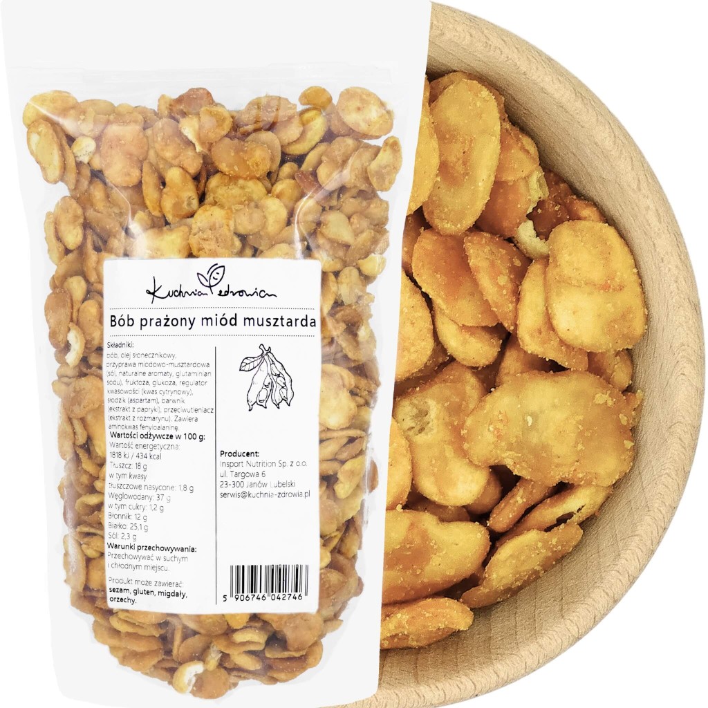 Bób prażony o smaku miodu i musztardy to unikalna, smakowita przekąska, która łączy zdrowotne korzyści bobu z wyrafinowanym smakiem. Bób, znany ze swojej wysokiej zawartości białka i błonnika, jest uznawany za jedno z najzdrowszych źródeł roślinnego białka.