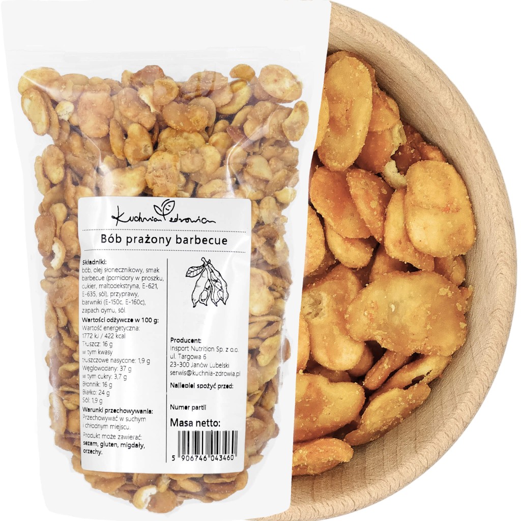 Bób prażony chili BBQ to doskonała przekąska dla tych, którzy cenią sobie słodko-pikantne smaki z delikatną wędzoną nutą. Bób, znany ze swoich wyjątkowych właściwości zdrowotnych, jest bogaty w białko i błonnik, co czyni go doskonałym wyborem dla osób szukających roślinnych źródeł białka.