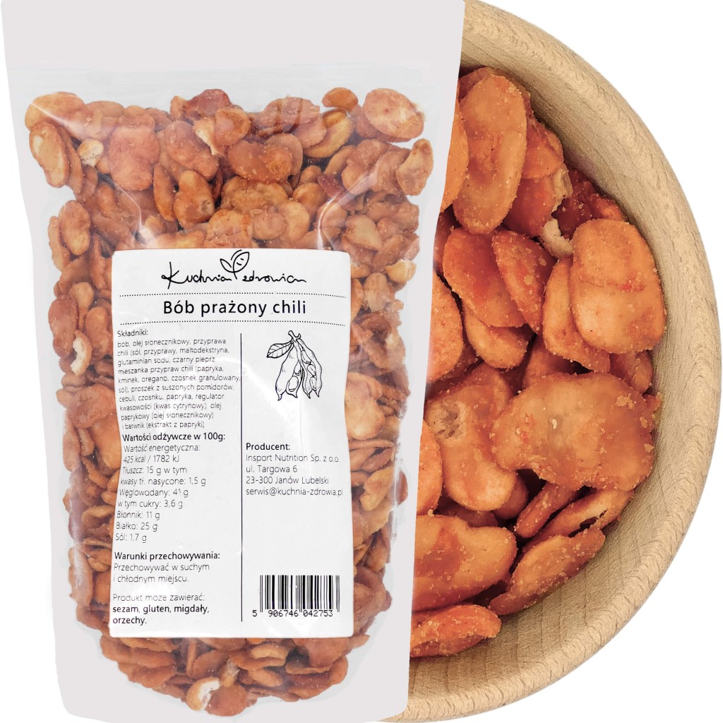 Bób prażony chili to doskonała przekąska dla tych, którzy cenią sobie pikantne smaki. Bób, znany ze swoich wyjątkowych właściwości zdrowotnych, jest bogaty w białko i błonnik, co czyni go doskonałym wyborem dla osób szukających roślinnych źródeł białka.