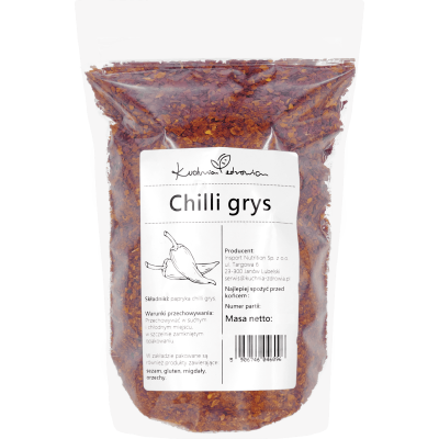 Papryka chilli w formie grysu to unikatowy i wszechstronny produkt, idealny dla tych, którzy cenią sobie intensywny smak i pikantność w swoich potrawach. Są to wysokiej jakości, zmielone suszone papryczki chilli, które zostały starannie wyselekcjonowane, aby zapewnić głębię smaku oraz odpowiedni poziom ostrości. Produkt charakteryzuje się czerwonawo-brązowym odcieniem, co jest wynikiem naturalnego procesu suszenia i mielenia papryczek.