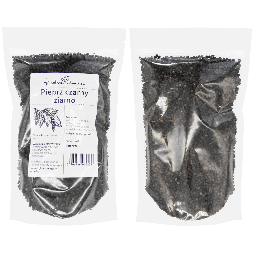 Pieprz czarny w ziarnach to jedna z najbardziej uniwersalnych i powszechnie używanych przypraw na świecie, pochodząca z wysuszonych owoców rośliny Piper nigrum, która jest uprawiana w klimacie tropikalnym. Pieprz czarny charakteryzuje się ostrym, pikantnym smakiem i aromatem, który może wzbogacić niemal każdą potrawę, a jego uniwersalność sprawia, że jest obecny w kuchniach na całym świecie. Stosowany jest zarówno w całości, jak i w postaci zmielonej bezpośrednio przed spożyciem, aby zachować jego pełnię smaku i aromatu.