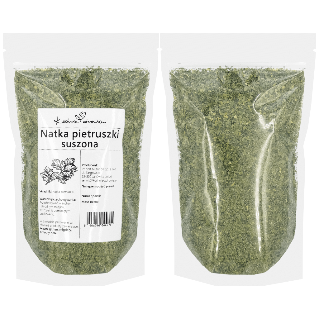 W kuchni suszona pietruszka znajduje wszechstronne zastosowanie. Doskonale sprawdza się jako dodatek do zup, sosów, dressingów, sałatek, a także do potraw mięsnych i rybnych, nadając im wyjątkowego aromatu i smaku. Może być również używana jako dekoracja potraw, dodając im koloru i wizualnej atrakcyjności. Jest nieodzownym składnikiem wielu mieszanek ziołowych i przyprawowych, oferując łatwy sposób na urozmaicenie codziennych posiłków, bez konieczności korzystania ze świeżych ziół, co jest szczególnie przydatne w zimowych miesiącach lub dla osób z ograniczonym dostępem do świeżych produktów.