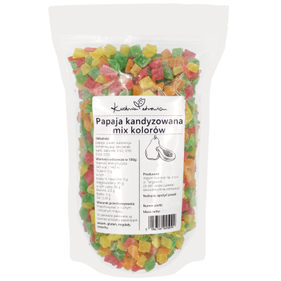 Papaja kandyzowana marki Kuchnia Zdrowia to wysokiej jakości, naturalny przysmak, który łączy w sobie egzotyczny smak świeżej papai z delikatną słodyczą procesu kandyzowania. Produkt ten jest starannie przygotowywany z najlepszych, starannie wyselekcjonowanych owoców papai, aby zapewnić nie tylko doskonały smak, ale także zachować jak najwięcej wartości odżywczych.