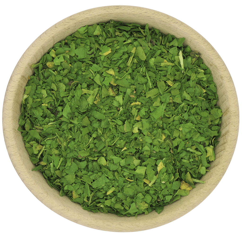 Bazylia suszona to popularna przyprawa kulinarna pozyskiwana z liści bazylii (Ocimum basilicum), rośliny z rodziny jasnotowatych, która jest ceniona za swój charakterystyczny, słodko-pikantny smak i aromat. W procesie suszenia, świeże liście bazylii są delikatnie suszone w kontrolowanych warunkach, aby zachować ich smak i właściwości aromatyczne. Suszenie koncentruje smak bazylii, co sprawia, że jest ona bardziej intensywna niż jej świeża wersja.