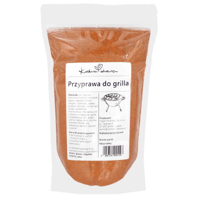 Przyprawa do grilla to wszechstronna mieszanka aromatycznych ziół i przypraw, opracowana specjalnie z myślą o wzbogacaniu smaku mięs, ryb, warzyw i innych potraw przygotowywanych na grillu. Ta starannie skomponowana kompozycja dodaje potrawom wyjątkowego charakteru, podkreślając ich naturalne smaki.