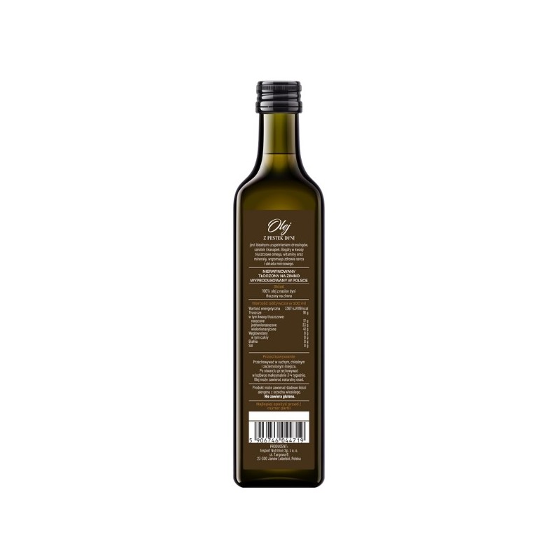 Skład: 100% olej z nasion dyni tłoczony na zimno.