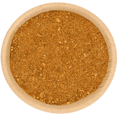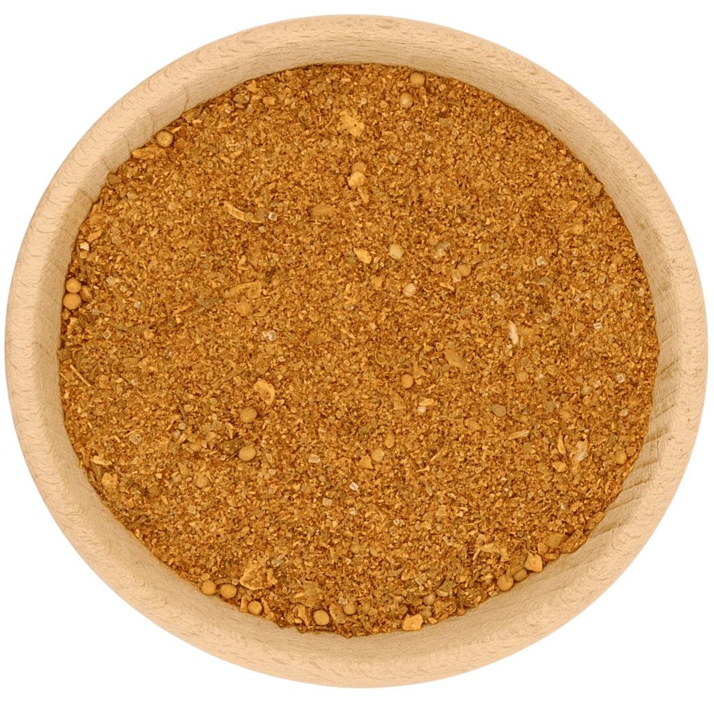 Składniki: sól, papryka słodka, cukier, gorczyca, pasternak mielony, kolendra, majeranek, cebula, czosnek, chilli, kozieradka, tymianek, marchew, pasternak grys, bazylia, por, oleorezyna