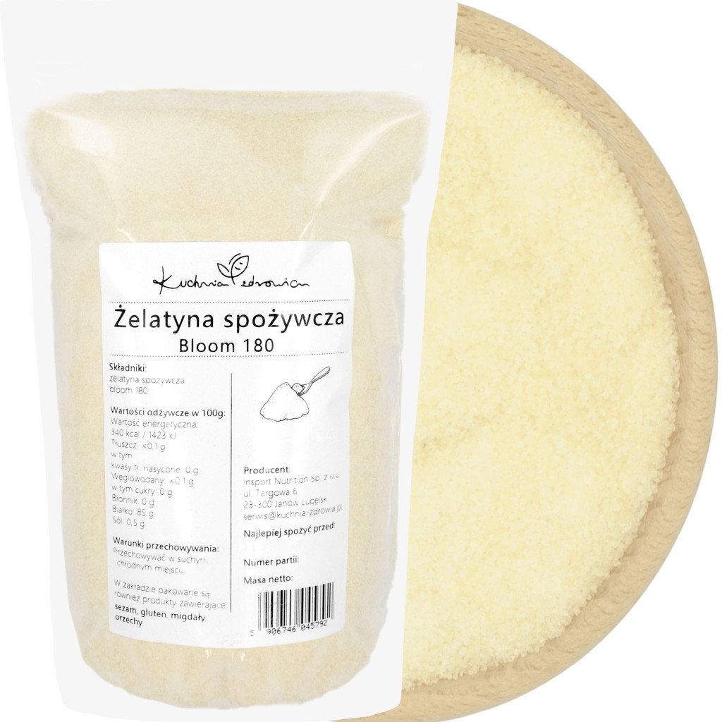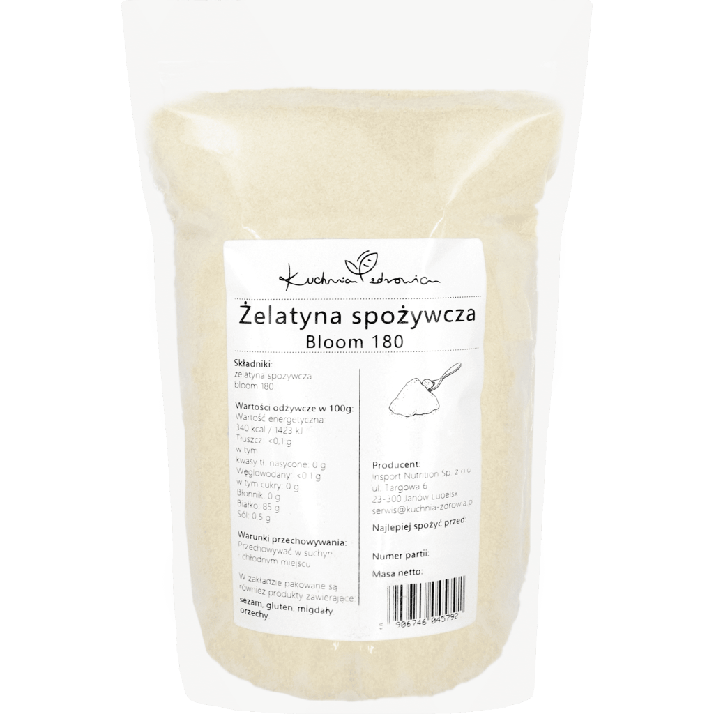 Składniki: żelatyna spożywcza bloom 180.