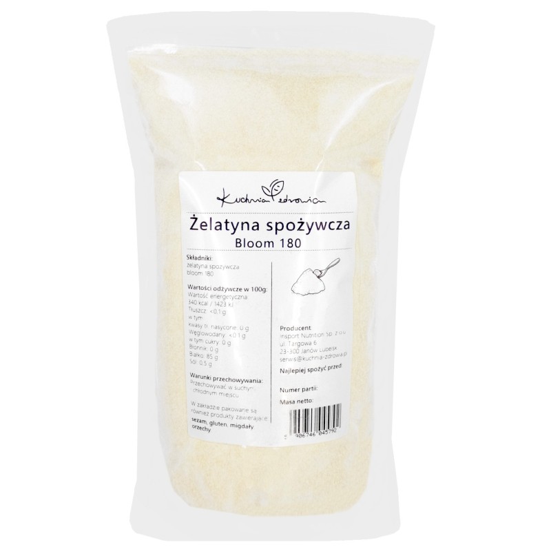 Składniki: żelatyna spożywcza bloom 180.