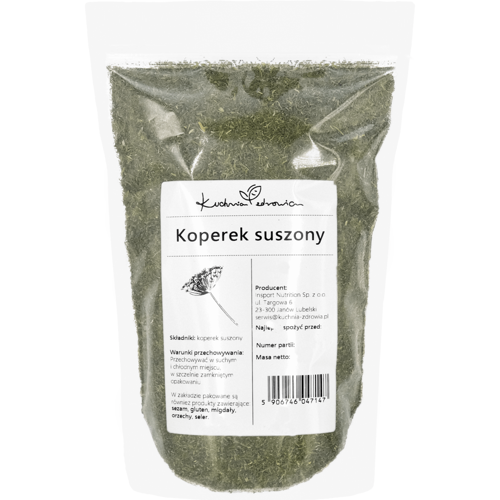 ✔️Zachowuje wiele cennych składników, choć w nieco mniejszym stopniu niż koperek świeży. Mimo to wciąż wzbogaca dietę o składniki roślinne i dodaje potrawom charakterystycznego smaku.