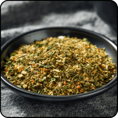 ➡️Składniki: Sól, cukier, papryka, marchew, pasternak, kozieradka, czosnek, glutaminian sodu, cebula, curry (kurkuma, gorczyca, kozieradka, mąka kukurydziana, sól, kolendra, czosnek, kmin rzymski, koper włoski, goździki mielone, cynamon, chilli, liść laurowy mielony, gałka mielona, imbir, pasternak mielony, pieprz czarny mielony), kolendra, oregano, papryka, chilli, kminek, tymianek, barwnik naturalny: oleorezyna papryki, tymianek, oregano, bazylia.