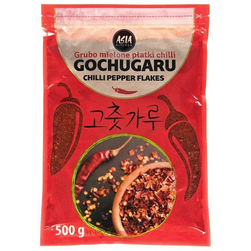 Suszona, grubo mielona papryka chili, oczyszczona z pestek i błonek. Odznacza się charakterystycznym, słodko-pikantnym smakiem, podbitym subtelną wędzoną nutą oraz piękną, ciemnoczerwoną barwą, która wspaniale wzbogaca wygląd potraw. Ten tradycyjny, ostry dodatek stosowany jest do niezliczonych specjałów kuchni koreańskiej, począwszy od dań smażonych, zup i duszonek, aż po pieczenie, chłodniki i kiszonki.