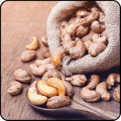 Orzechy nerkowca, wbrew swojej nazwie, nie są wcale orzechami. Są to w rzeczywistości nasiona tropikalnego drzewa – nanercza zachodniego. Produkt jest świetnym źródłem białka oraz minerałów, takich jak żelazo i cynk, co czyni je doskonałym dodatkiem do diety wegetariańskiej lub wegańskiej. Już niewielka porcja orzechów nerkowca dostarcza niemal tyle samo białka co równoważna porcja mięsa.