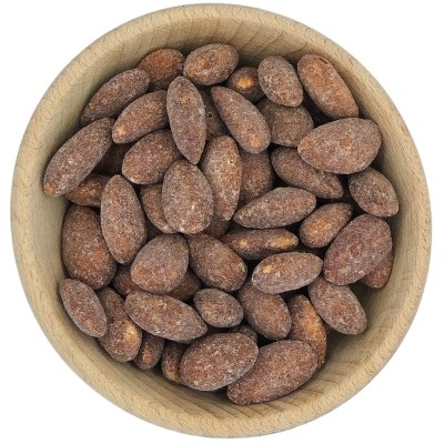✔️Tak, prażenie zmienia strukturę i smak migdałów, a dodatek cynamonu i cukru trzcinowego nadaje im wyjątkowego aromatu, czyniąc je nieco słodszymi i bardziej chrupiącymi.