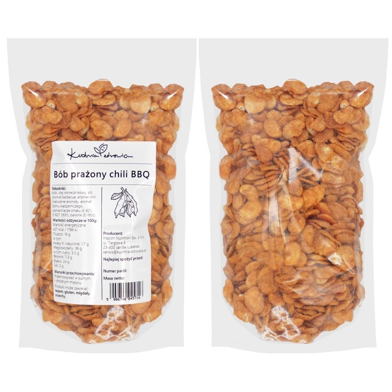 Bób prażony chili BBQ to doskonała przekąska dla tych, którzy cenią sobie słodko-pikantne smaki z delikatną wędzoną nutą. Bób, znany ze swoich wyjątkowych właściwości zdrowotnych, jest bogaty w białko i błonnik, co czyni go doskonałym wyborem dla osób szukających roślinnych źródeł białka.