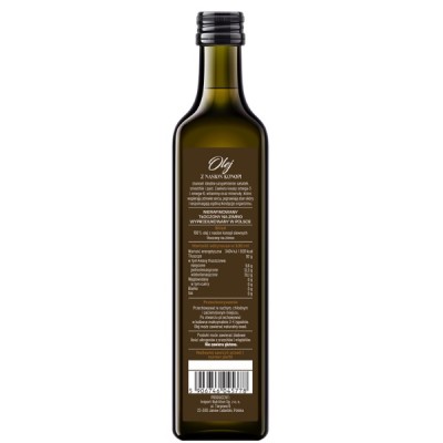 Należy pamiętać, aby nie podgrzewać oleju, ponieważ wysoka temperatura niszczy jego dobroczynne właściwości. Olej należy spożywać wyłącznie na zimno.