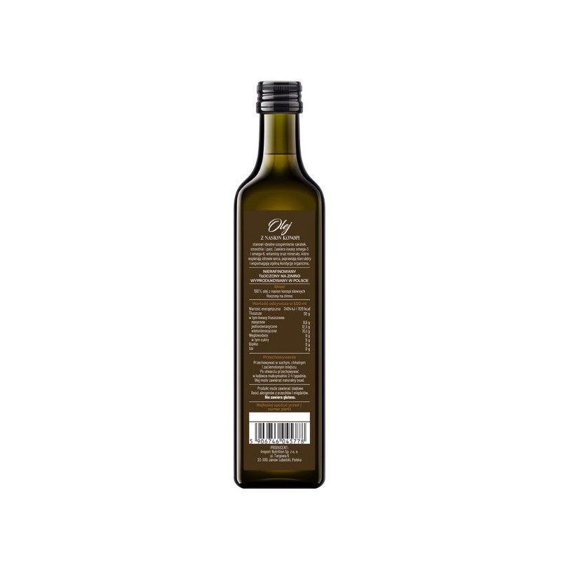Skład: 100% olej z nasion konopi siewnych tłoczony na zimno.