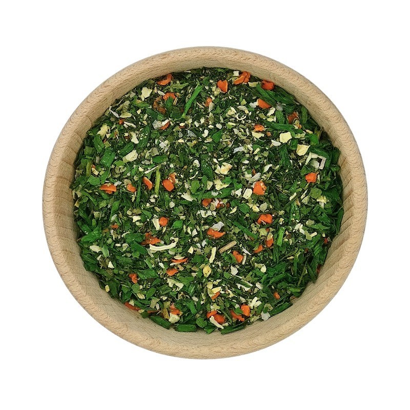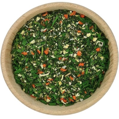 ➡️ Składniki: Bazylia, koperek, marchew suszona, natka pietruszki, czosnek suszony, cebula, majeranek, szczypiorek, pasternak, oregano.