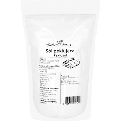 ✔️ Peklosól jest przeznaczona wyłącznie do peklowania mięs i wędlin, ponieważ oprócz chlorku sodu zawiera azotyn sodu, który nadaje charakterystyczny kolor i hamuje rozwój bakterii. Do codziennego solenia potraw zaleca się standardową sól kuchenną.