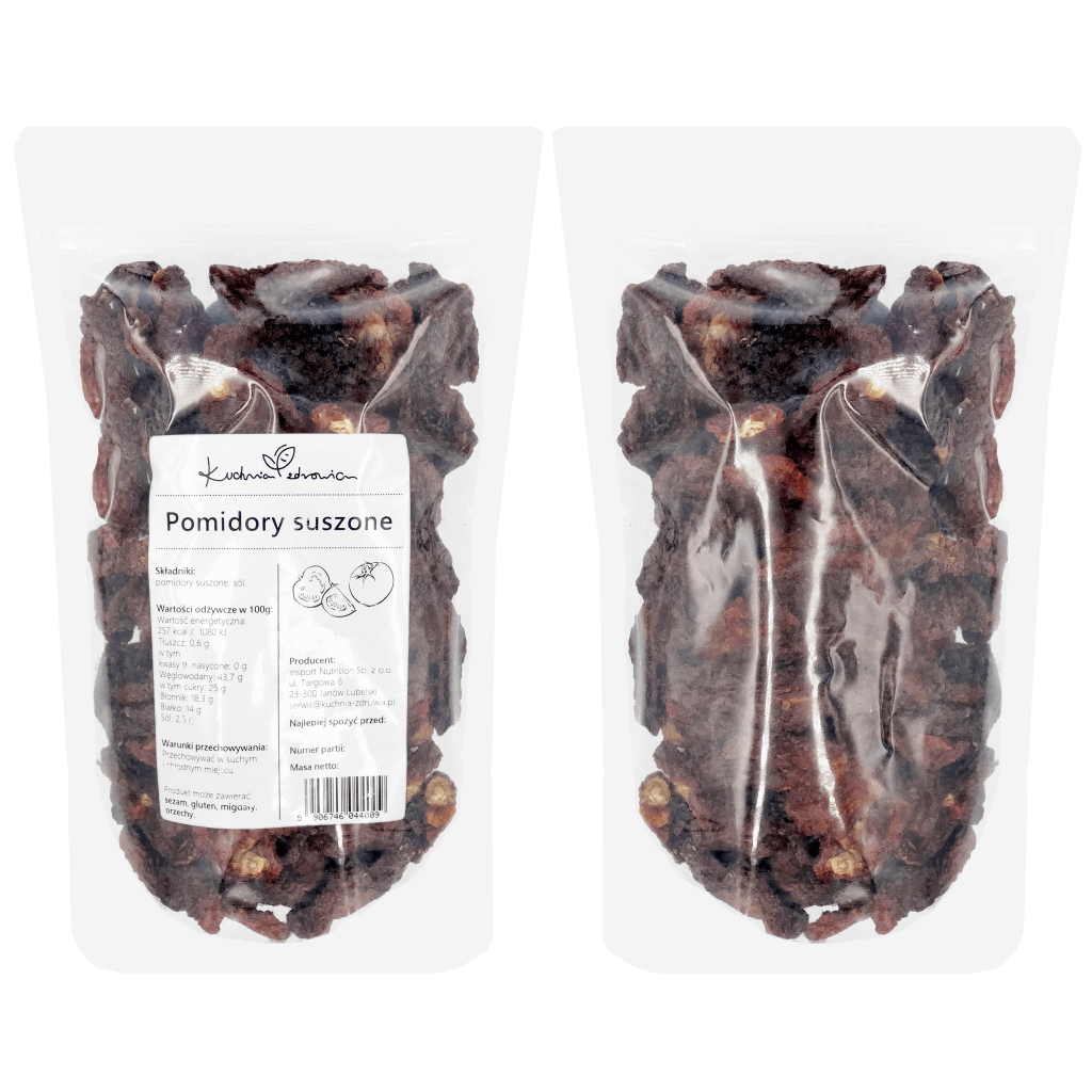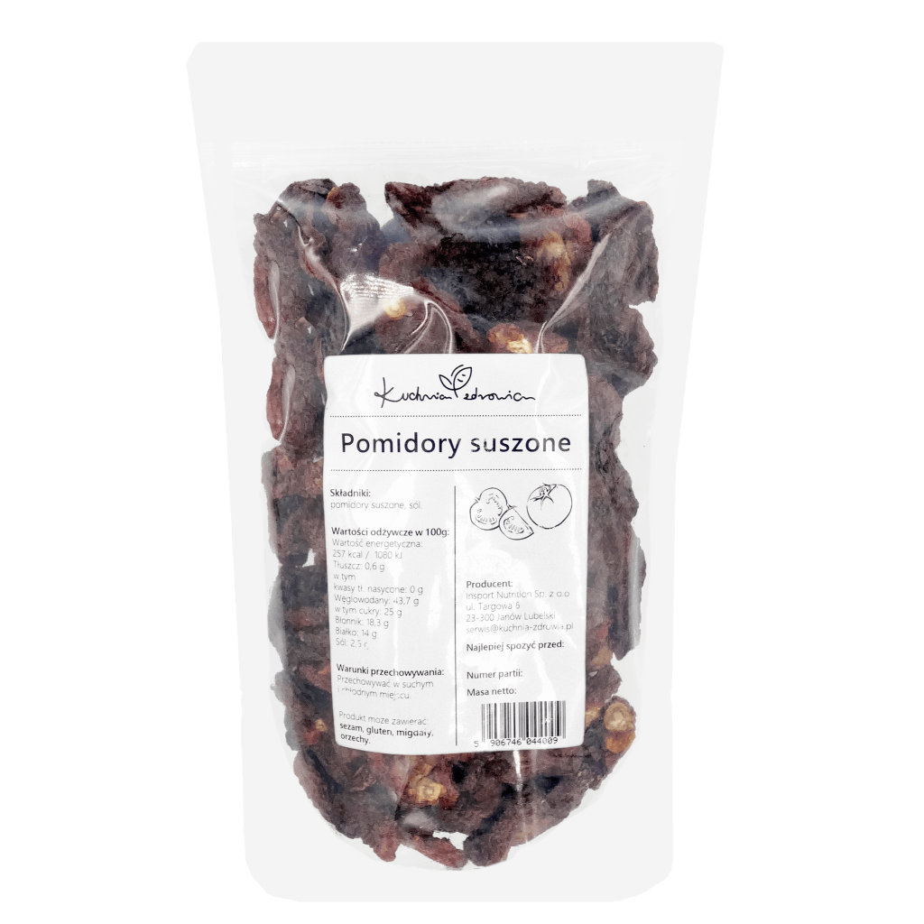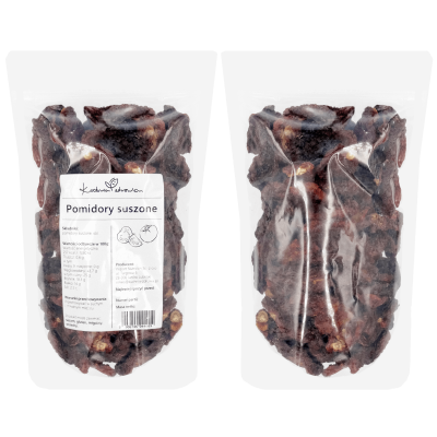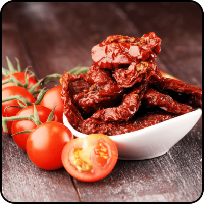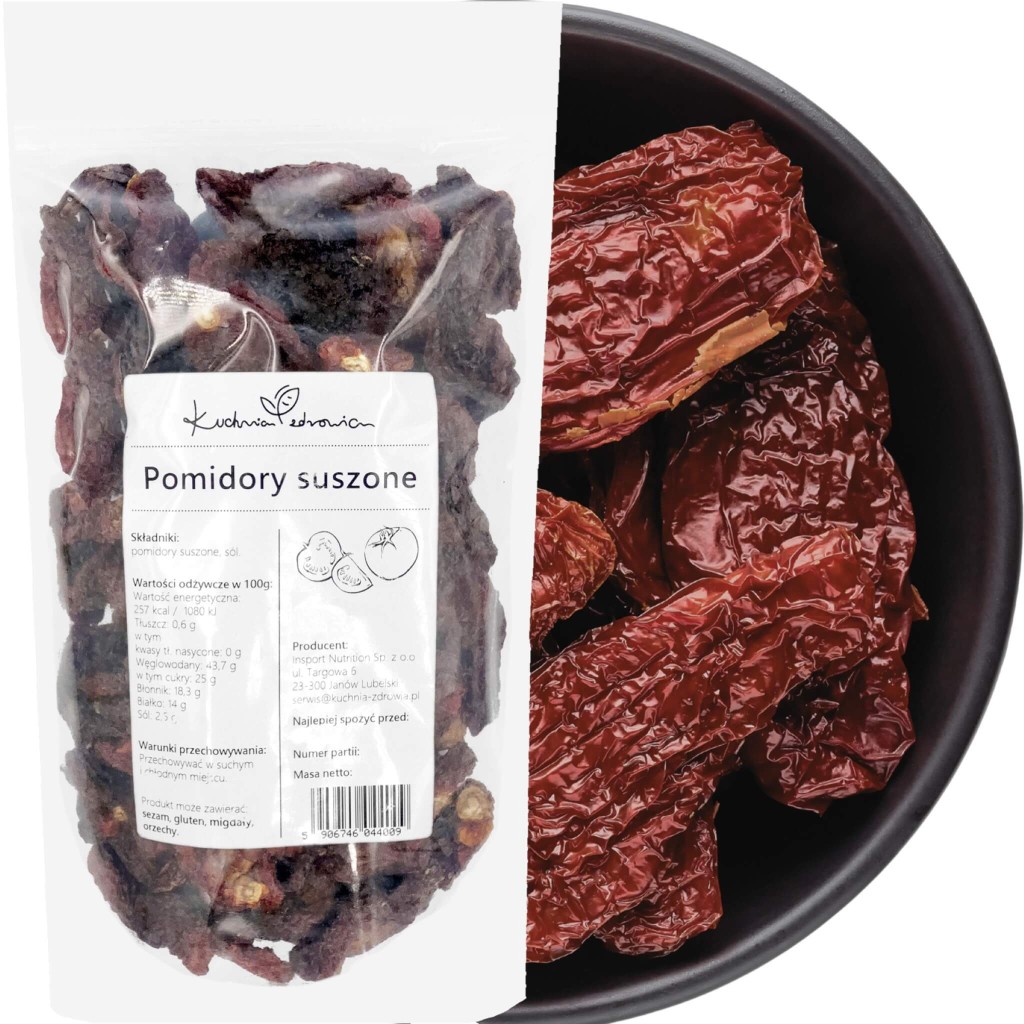 Pomidory suszone to unikalny produkt kulinarny, który jest pozyskiwany w wyniku suszenia świeżych pomidorów. Proces suszenia skupia i intensyfikuje naturalne słodkie i kwasowe nuty pomidorów, powodując powstanie głębokiego, bogatego smaku, który jest często opisywany jako słodko-kwasowy. Pomidory suszone są często używane w kuchniach śródziemnomorskich nadając potrawom intensywny i wyrazisty smak.