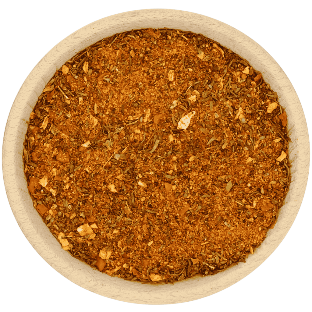 Wyrazista mieszanka soli, ziół, przypraw i suszonych warzyw.
