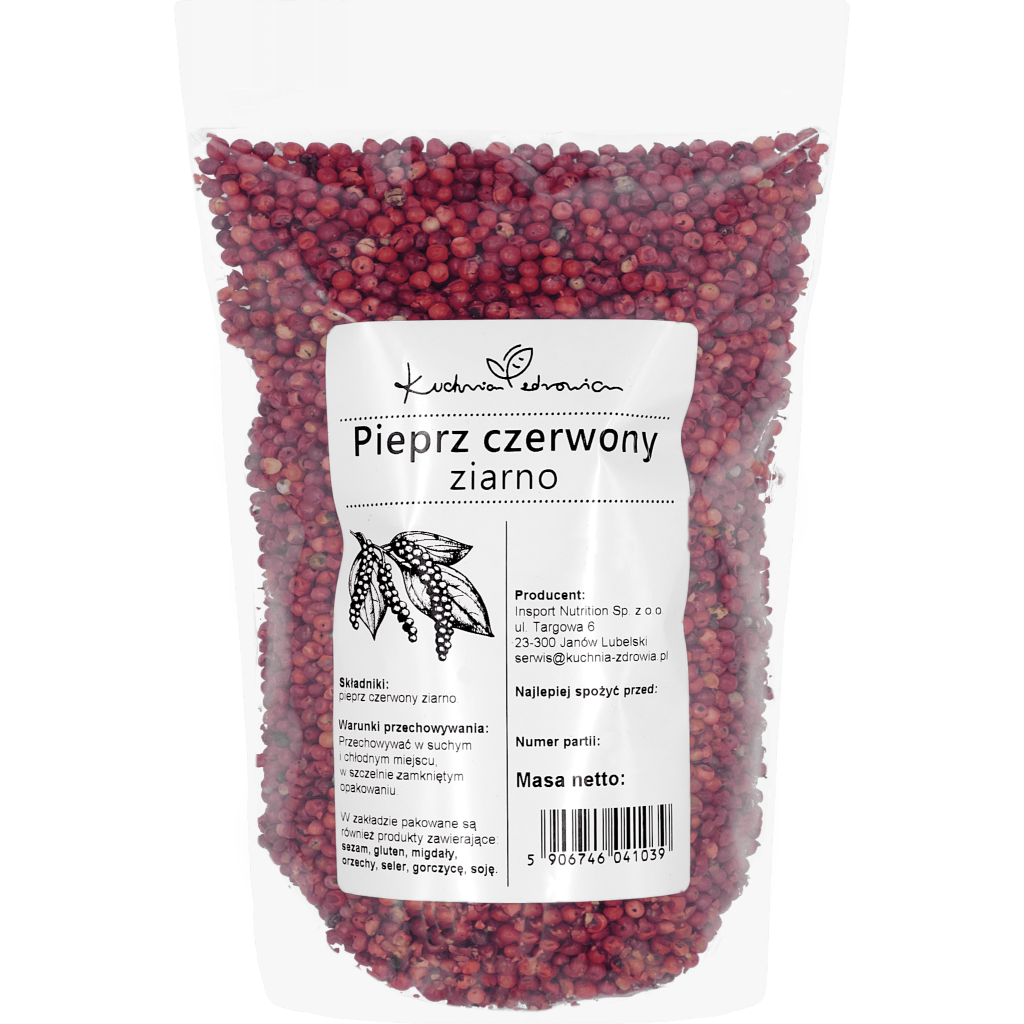 Pieprz czerwony ziarno Kuchnia Zdrowia to propozycja dla osób, które chcą wzbogacić smak potraw o bardziej subtelny i interesujący akcent niż w przypadku klasycznych przypraw. Całe ziarna dobrze zachowują aromat, a jednocześnie dają dużą swobodę zastosowania – można dodawać je w całości, lekko rozgnieść lub używać bezpośrednio przed podaniem.