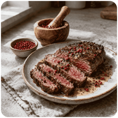 Pieprz czerwony ziarno to przyprawa o delikatnie pieprznym, lekko owocowym charakterze. Dobrze sprawdza się w daniach wytrawnych, marynatach i dekoracyjnym wykończeniu potraw. Całe ziarna pozwalają wygodnie dozować intensywność smaku.