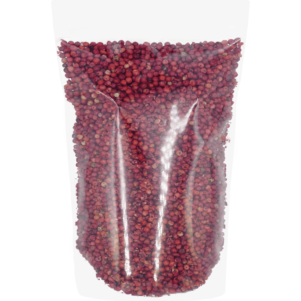 Pieprz czerwony ziarno to przyprawa o delikatnie pieprznym, lekko owocowym charakterze. Dobrze sprawdza się w daniach wytrawnych, marynatach i dekoracyjnym wykończeniu potraw. Całe ziarna pozwalają wygodnie dozować intensywność smaku.