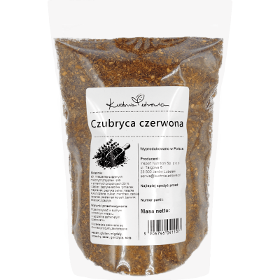 Czubryca czerwona to uniwersalna przyprawa o wyrazistym, ziołowo-paprykowym charakterze, która dobrze wpisuje się w codzienne gotowanie. Kompozycja oparta na soli oraz mieszance suszonych mielonych przypraw i ziół sprawia, że produkt może być wygodnym dodatkiem do wielu dań wytrawnych. W składzie znajdują się między innymi cząber, papryka słodka, tymianek, majeranek i papryka ostra, które nadają mieszance charakterystyczny aromat i lekko pikantny profil smakowy.