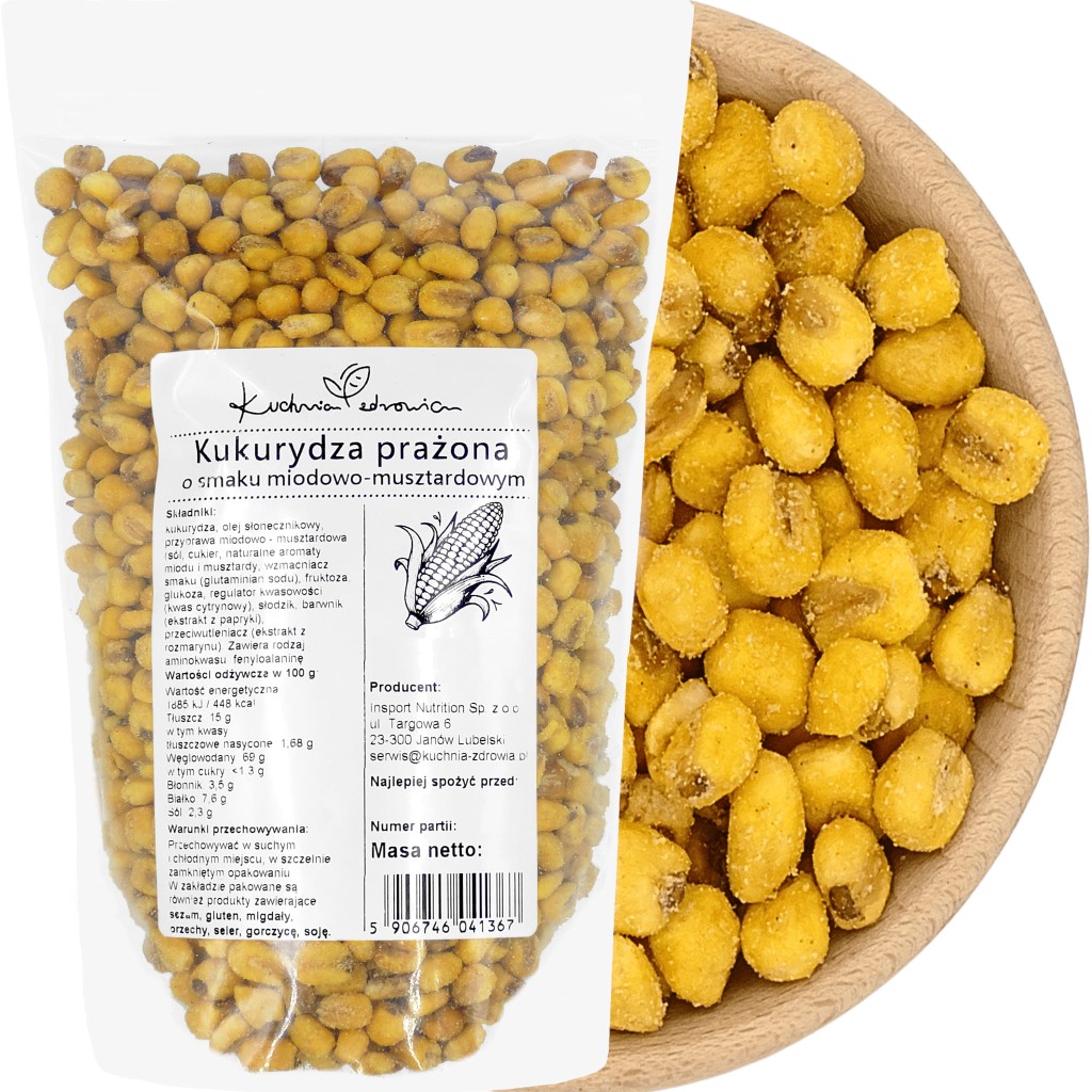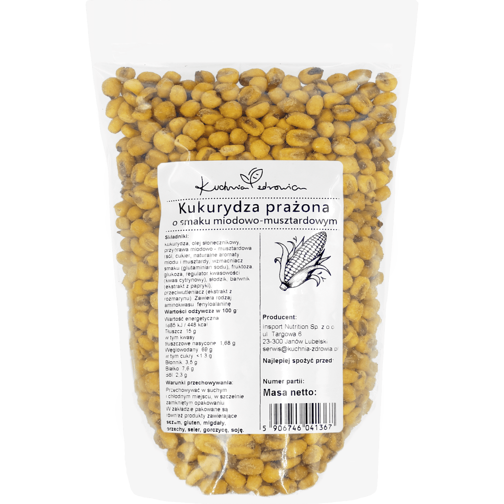 Kukurydza prażona o smaku miodowo-musztardowym Kuchnia Zdrowia to propozycja dla osób, które szukają przekąski o zdecydowanym charakterze. Chrupiąca forma i dopracowane połączenie smakowe sprawiają, że produkt dobrze sprawdza się jako alternatywa dla klasycznych słonych przekąsek. Nuty miodowe dodają lekko słodkiego akcentu, a musztardowy profil podkreśla wyrazistość całości.